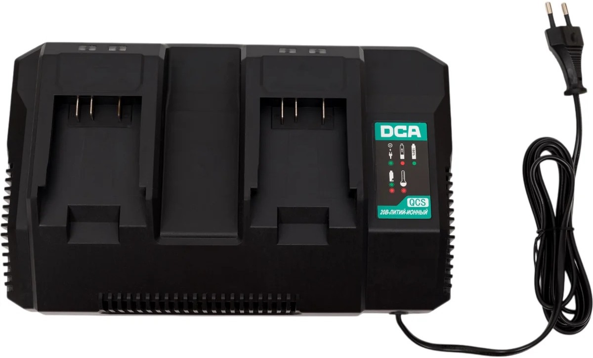 Двухпортовое зарядное устройство DCA 20 В предназначено для одновременной зарядки двух аккумуляторов, используемых в электроинструментах DCA. Устройство обеспечивает быструю и стабильную зарядку, позволяя поддерживать аккумуляторный инструмент в постоянной готовности к работе. Интеллектуальная система защиты предотвращает перегрев и перегрузку, повышая безопасность эксплуатации и продлевая срок службы батарей. Зарядное устройство подходит для использования в мастерских, на строительных объектах и в бытовых условиях.