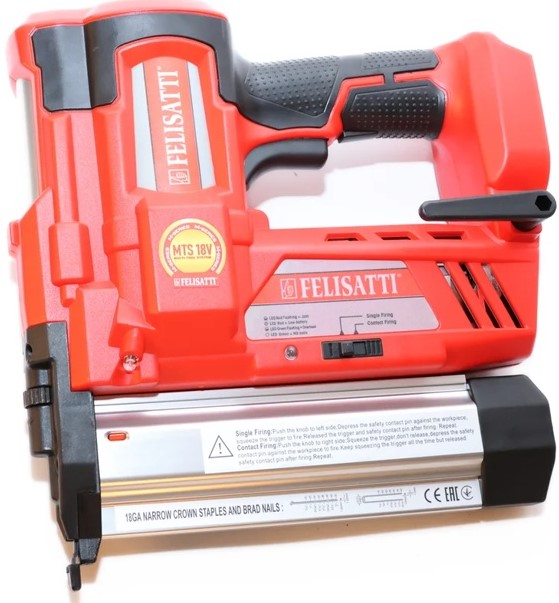 Аккумуляторный гвоздезабиватель Felisatti FT1646 предназначен для быстрого и надёжного крепления различных материалов при строительных, монтажных и ремонтных работах. Инструмент способен забивать гвозди длиной до 50 мм и использовать скобы длиной до 40 мм, что делает его универсальным решением для фиксации древесины, панелей, листовых материалов, декоративных элементов и отделочных компонентов. Работа от аккумулятора 18 В обеспечивает мобильность и свободу перемещения без проводов, что особенно важно на стройплощадках и в труднодоступных зонах.