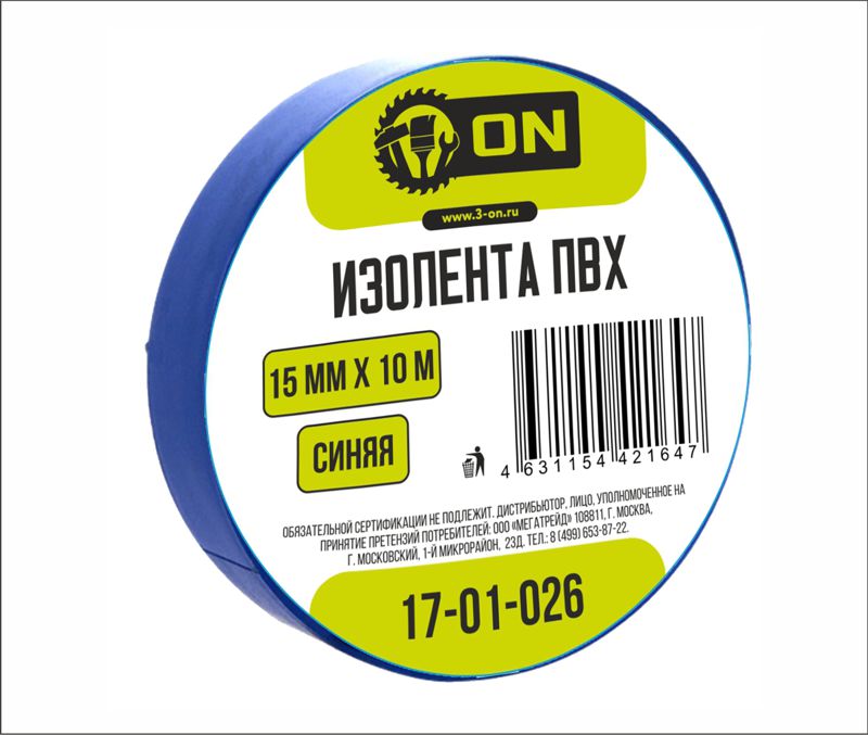 Изолента ПВХ ON 15мм х 10м синяя