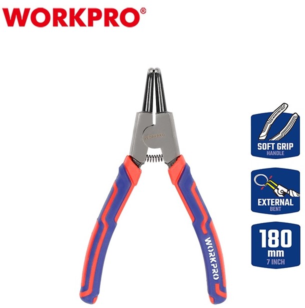 Клещи для съема внешних стопорных колец 180мм CR-V загнутые, двухкомпонент.рукоятка WORKPRO WP231151
