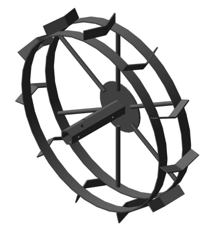 - Сплошной металлический обод с рёбрами повышает проходимость и тяговое усилие на сложных участках.