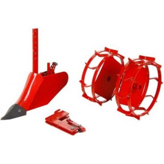 - Полный комплект — включает все необходимое: сцепку, колеса и окучник.