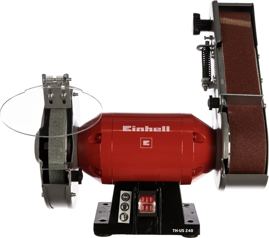 Точильный станок Einhell TH-US 240 предназначен для шлифования, зачистки и доводки деталей из мягкого металла и древесины. Комбинация шлифовальной ленты и абразивного круга позволяет выполнять широкий спектр работ — от черновой обработки до точной финишной шлифовки. Прочный корпус защищает внутренние узлы от повреждений, а устойчивое основание с виброгасящими ножками обеспечивает стабильную и комфортную работу. Станок идеально подходит для домашней мастерской, гаража и небольших производств.